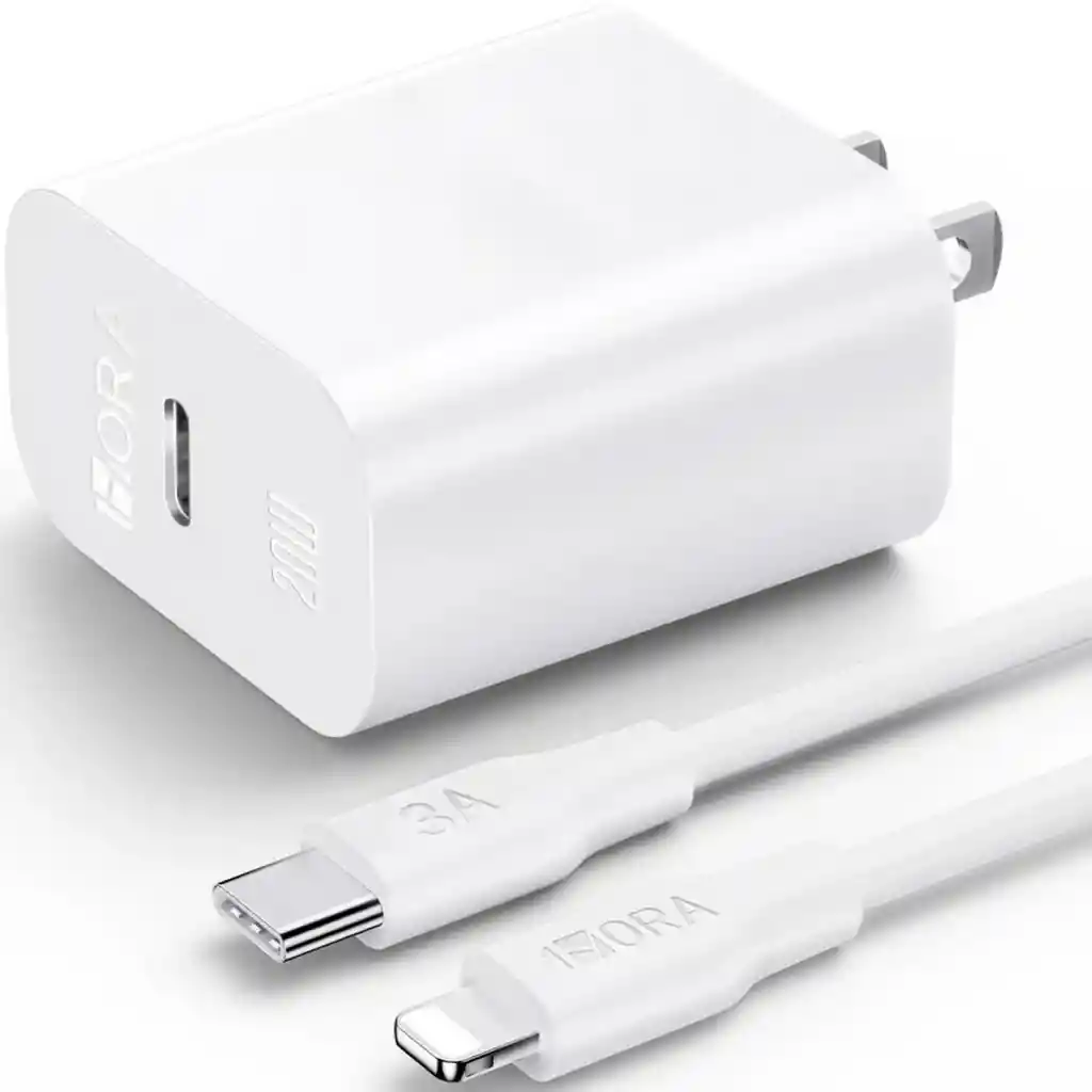 Carga y Sincronización Rápida de 20 W Equipado con un puerto USB tipo C, El cargador USB C de carga rápida PD3.0 con 1M cable, compatible con iPhone 14 13 12 carga del 0% al 70% en solo 30 minutos, le ahorra más de 1 hora en comparación con el cargador original de 5W. Carga Súper Segura y Rápida El cargador tipo c compatible con iPhone tiene un sistema de seguridad multipotente que garantiza una protección completa para sus dispositivos de iluminación, evitando sobretensiones, sobrecargas, sobrecalentamiento, etc.