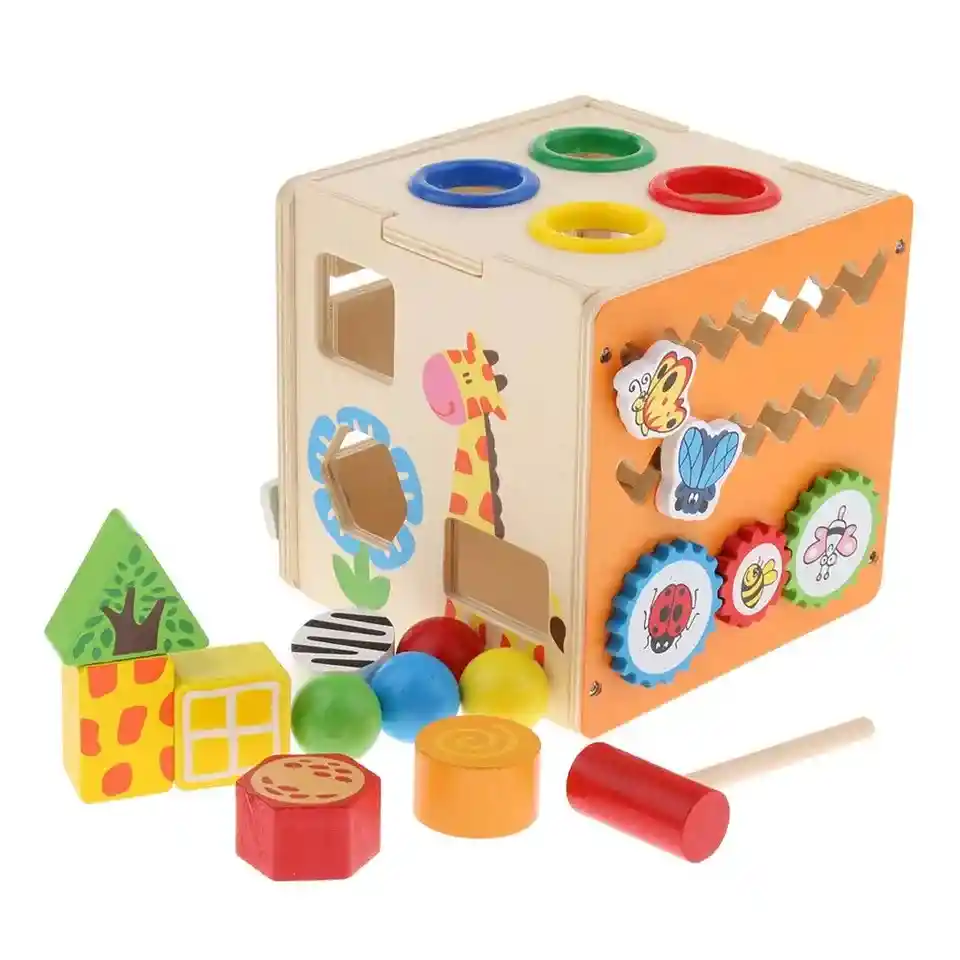 Cubo de desarrollo de madera 6 en 1, juego de reconocimiento de forma de Color, Juguetes educativos de aprendizaje temprano, regalo para niños(a) -Cubo de juguete educativo de madera de inteligencia Multifuncional-juguetes para niños para bebés de desarrollo temprano. -Divertidos juegos de cubo-juegos de rompecabezas geométricos, rollo de laberinto de coche, juego de pelota. -Versátil: aprendiendo colores y formas a través de la cognición, juegos de bloques para animales de coche. Primeras herramientas educativas para la inteligencia. -Desarrollo sensorial para bebés y aumentar la capacidad de coordinación ocular del bebé. -Juguetes perfectos para desarrollar y mejorar el CI del bebé. Un buen regalo para niños(a).