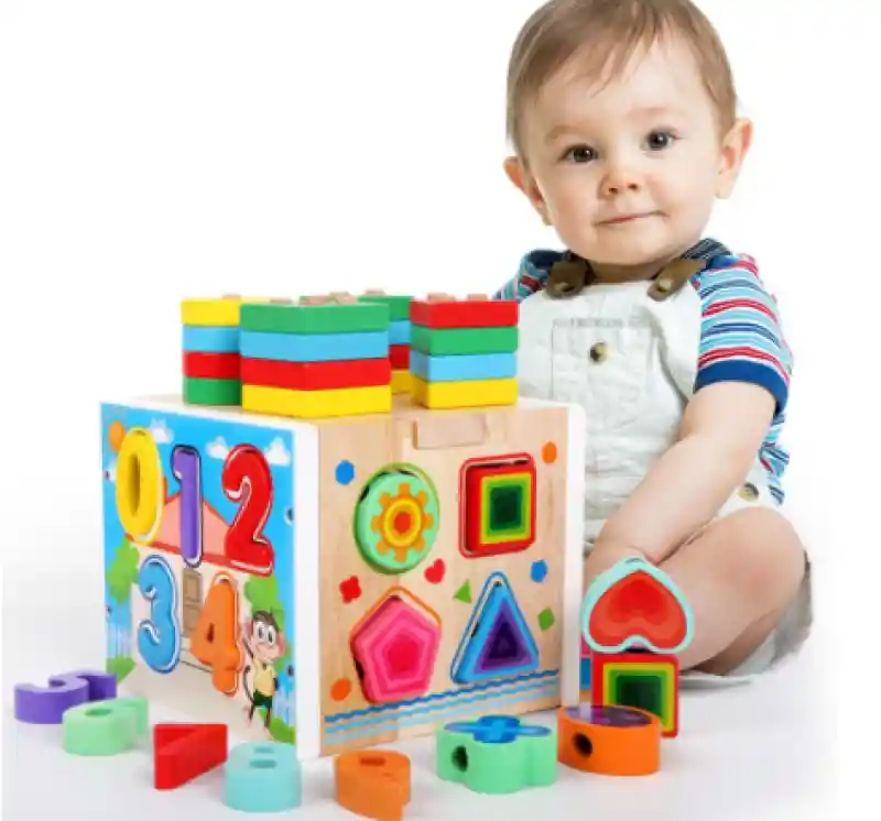 Cubo de actividades para bebes - Aprendizaje a temprana edad - Juguetes para bebés - Juguete de Madera - Educativo y multiusos - ideal para niños De 1 a 6 - Desarrolla creatividad e Inteligencia