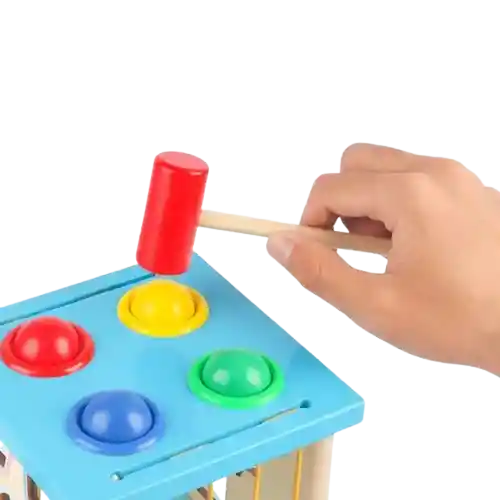 ✅️Este cubo de madera multifuncional combina 4 juegos Montessori y se puede utilizar a partir de los 2 años, bajo supervisión de los padres, y hasta los 3-4 años, dependiendo de cada niño. Ayuda a los más pequeños a desarrollar su concentración, pensamiento lógico, motricidad fina, aprender colores y formas, y más tarde el reloj. Los niños se benefician de 4 juegos diferentes: ✅juego con bolas y martillo del tipo caja de permanencia ✅clasificador con 4 formas geométricas y colores ✅clasificador de formas empotradas y clasificador elástico ✅juego de formas de encordar/cordar ✅️Tamaño del cubo : 14 x 14 x 15 cm Tamaño de la forma : entre 1,5-5 cm Diámetro de la bola : 3 cm Edad recomendada : 3 años+, se puede utilizar a partir de 2 años, pero bajo la estricta supervisión de un adulto Material : madera Color : multicolor