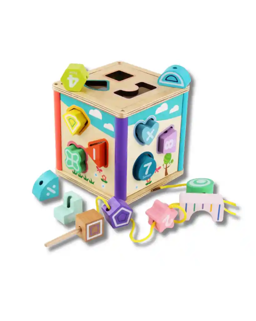 Este colorido cubo de madera está diseñado para estimular el aprendizaje temprano a través del juego. Ideal para niños en etapa preescolar que están descubriendo formas, colores, números y habilidades motoras. 📦 Incluye: - Cubo con múltiples caras para encajar formas geométricas - Bloques con números, letras y símbolos matemáticos - Cuerdas para ensartar piezas y desarrollar la motricidad fina 🎯 Beneficios: - Refuerza el reconocimiento de formas, colores y números - Introduce conceptos básicos de matemáticas y lenguaje - Mejora la coordinación ojo-mano y la destreza manual
