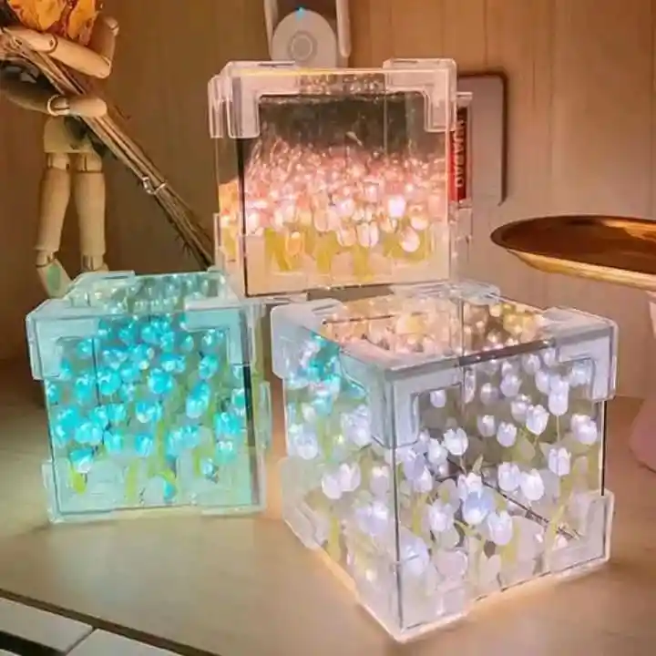 ubo de tulipanes🌷🧊 Especificaciones: * Luz nocturna de flores de bricolaje. * Material: acrílico y vidrio orgánico. * Tamaño terminado aproximadamente 10 x 10 x 10 cm. * Modo de fuente de alimentación: batería de botón. * Funciones adicionales: adornos, bricolaje, luces nocturnas, luces ambientales.