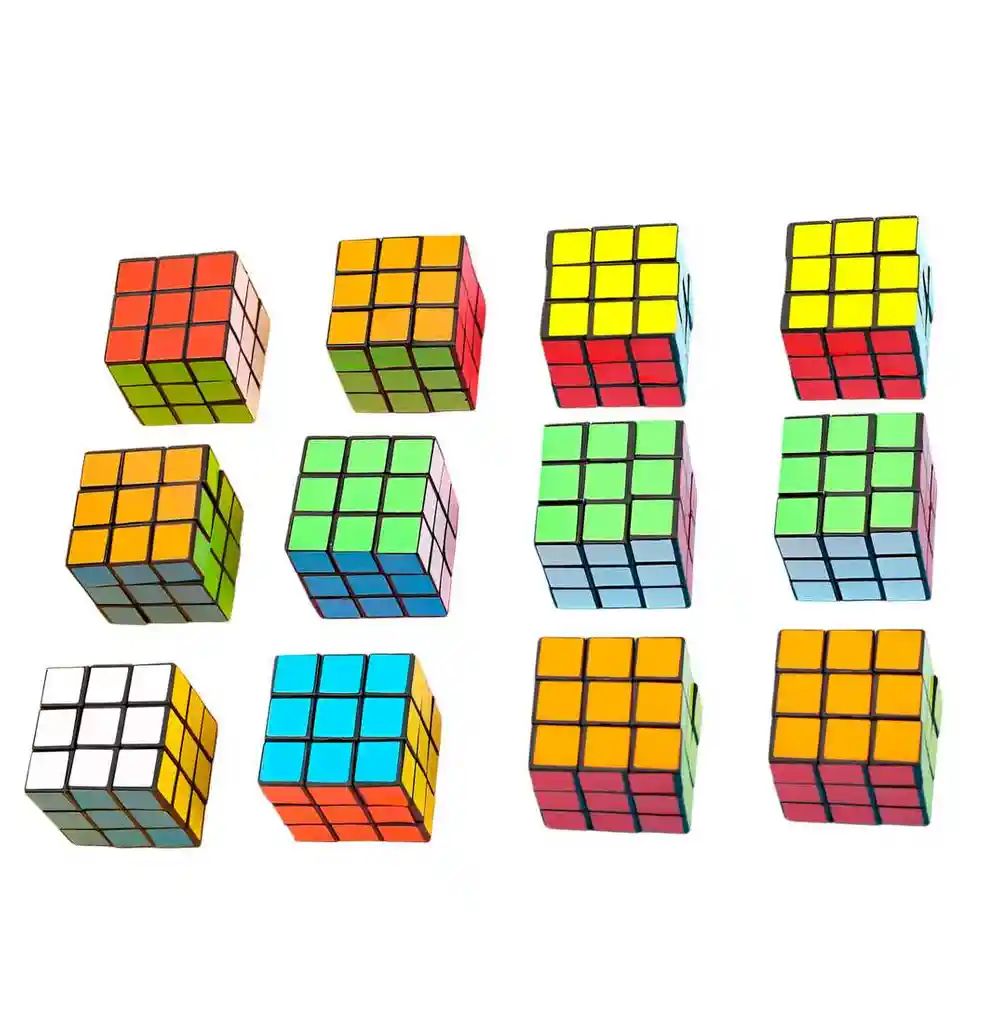Disfruta de la diversión en cualquier momento con esta docena de cubos tipo Rubik en miniatura, perfectos para coleccionar, regalar o usar como detalle original en fiestas y eventos. Cada cubo funciona como un rompecabezas en miniatura, con colores brillantes y un diseño compacto que cabe fácilmente en cualquier lugar. Ideales para entretenerte y desarrollar tu ingenio, estos cubos combinan diversión, estilo y practicidad en un solo producto. Ficha Técnica: Dimensiones : 3 cm x 3 cm x 3 cm Material : Metal / Plástico ABS Edad Recomendada : + 3 años Certificado de conformidad: SL-CS-210044 Referencia: RP622 ** _Para defectos de fábrica o retractos: \_Por favor revise el producto apenas lo reciba y antes de usarlo. No aplican ley de retracto o defectos de fábrica luego de usar el producto. Se manejan máximo 5 días para reportar defectos de fábrica (por ejemplo, producto funciona mal, piezas faltantes, rotas, etc). Para hacer efectiva la devolución el producto debe devolverse con el empaque original, el cual debe estar en buen estado, incluir todos los documentos y las partes completas y sin daños.