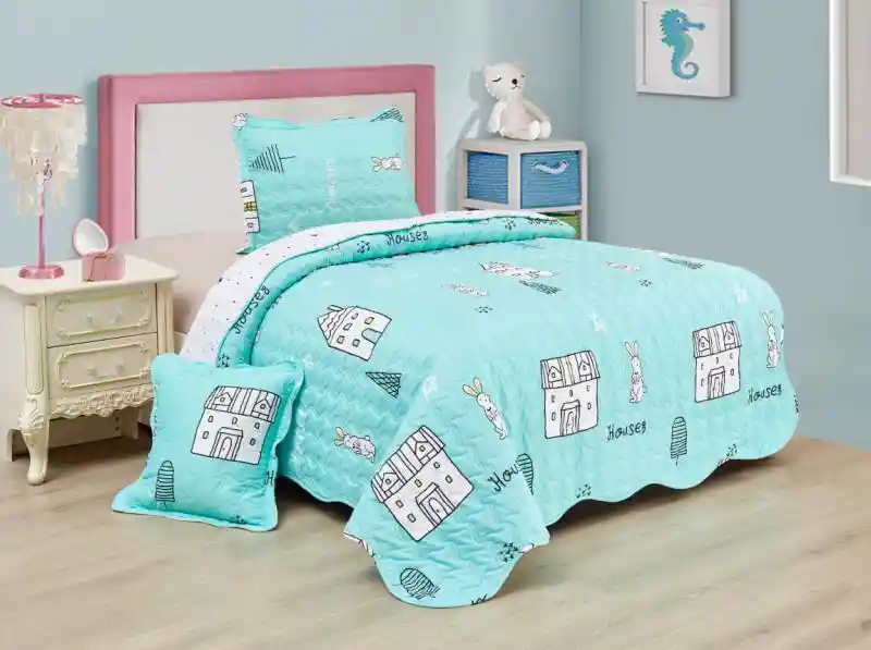 Colcha tipo Española InfantilCARACTERÍSTICAS:-Doble faz-Colchas ideales para uso en cualquier clima-Elegantes, sofisticadas, modernas-Medidas 1.80 de ancho por 2.25 de largo-Aptas para uso en Cama Sencilla y Semidoble-Elaboradas en Microfibra 100% poliéster-Incluyen 1 funda para almohada de 50X70 Cm y 1 funda para cojín de 40X40 Cm