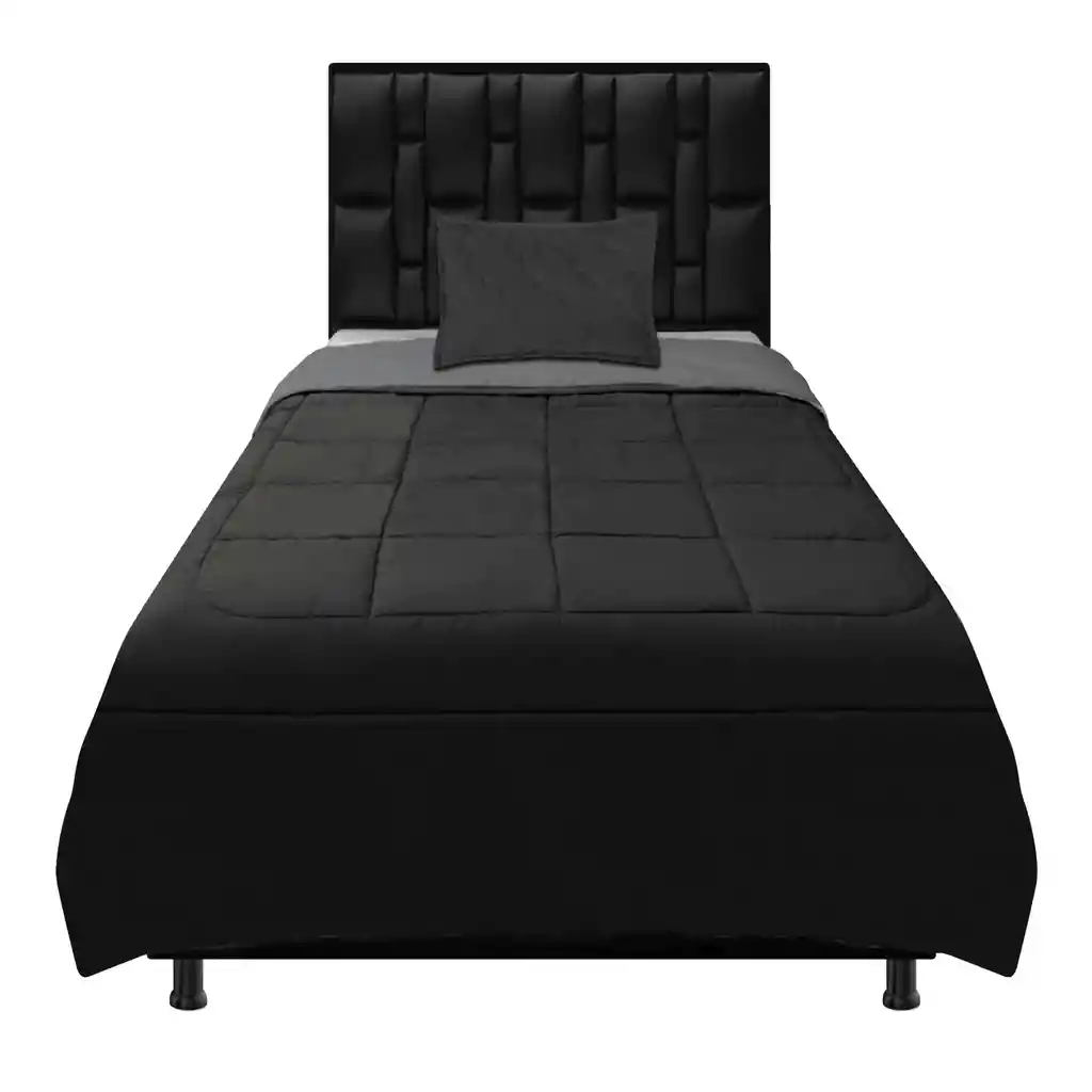 - CUBRELECHO DOBLE FAZ MODERNO DORMILANDIA. - Medida para cama: Sencilla, 100 cm - Alto: depende de la altura de la cama. - Tela: Fina tela importada - Color: Gris-Negro - Grosor de 2 cm aproximadamente - Contiene 1 funda, elaborada en tela fina importada acolchada. - Observaciones: La foto de este producto ha sido ambientada, por lo cual no incluye ningún adorno, ni accesorios, ni piezas adicionales, ni ningún otro elemento que lo acompañan. El color presentado en la fotografía es una aproximación al color real. - Las fotografías del producto mostrado son reales, debe tener en cuenta que la interpretación del color o textura pueden variar según la configuración de color de su dispositivo móvil o computador, asegúrese de leer detenidamente la información que le proporcionamos del producto antes de realizar la compra.