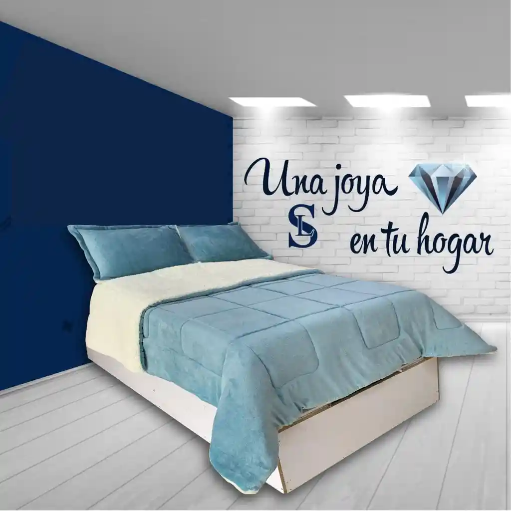 Cubrelecho doble, piel de durazno azul cielo con ovejero blanco, 5 piezas Medidas: Para cama doble 140 x 190 cm Cubrelecho de 220cmx240cm Dos fundas de 50x75cm Dos cojines: 35x35 cm Cobija-cubrelecho diseño reversible. Elaborado de un lado en flannel conocido como piel de durazno, tacto super suave, ofrece un acabado liso y elegante, ideal para un look sofisticado, mientras que el otro lado de tejido ovejero proporciona una apariencia rústica y hogareña. Perfecto para climas fríos o para invierno, sin necesidad de múltiples capas, alternando entre un lado elegante, y otro cálido y esponjoso. Cubrelecho, Cubrecama, Edredon, Plumon