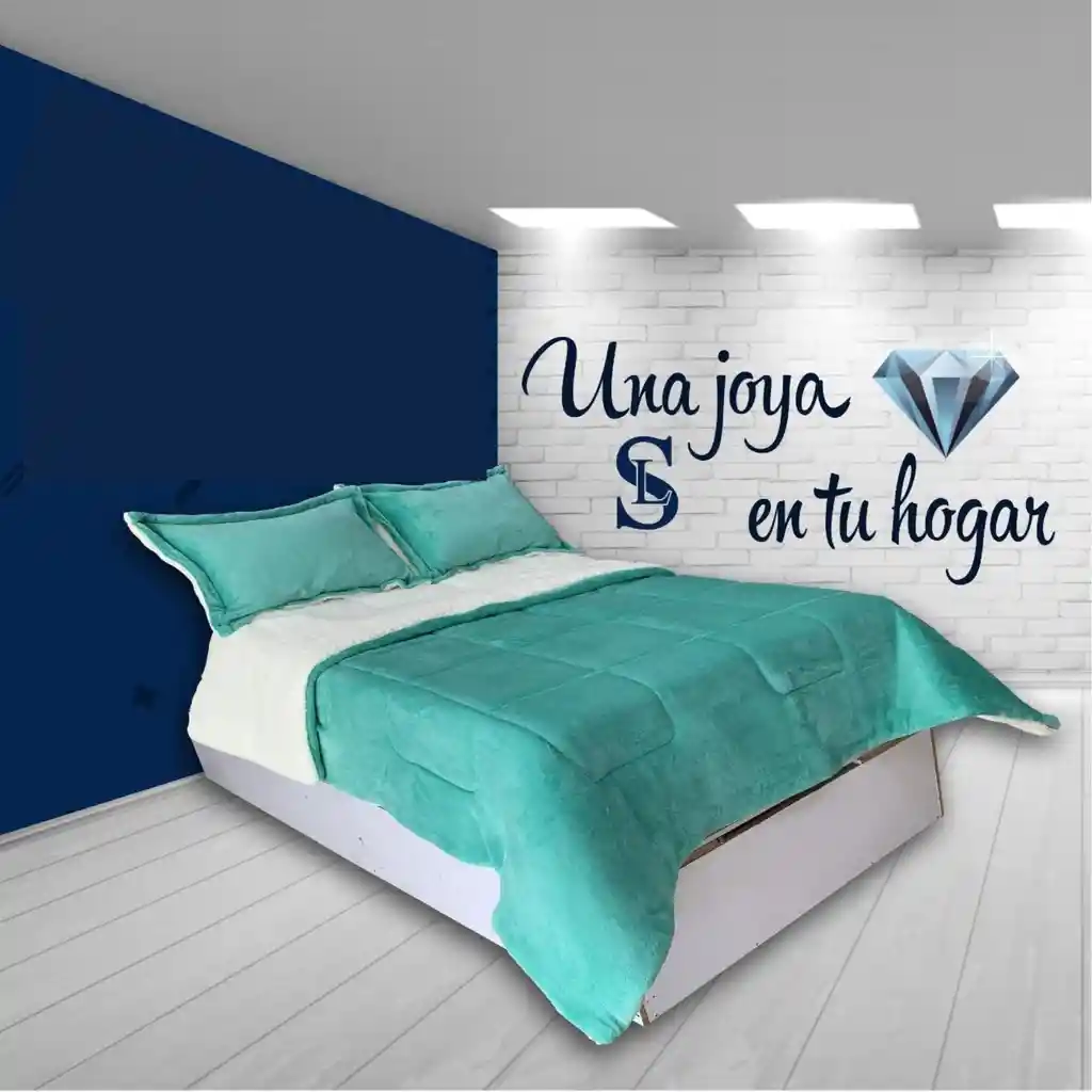 Cubrelecho doble, piel de durazno azul turquesa con ovejero blanco, 5 piezas Medidas: Para cama doble 140 x 190 cm Cubrelecho de 220cmx240cm Dos fundas de 50x75cm Dos cojines: 35x35 cm Cobija-cubrelecho diseño reversible. Elaborado de un lado en flannel conocido como piel de durazno, tacto super suave, ofrece un acabado liso y elegante, ideal para un look sofisticado, mientras que el otro lado de tejido ovejero proporciona una apariencia rústica y hogareña. Perfecto para climas fríos o para invierno, sin necesidad de múltiples capas, alternando entre un lado elegante, y otro cálido y esponjoso. Cubrelecho, Cubrecama, Edredon, Plumon