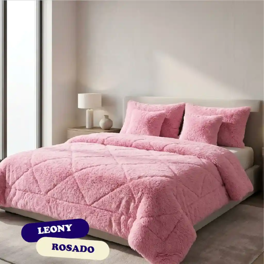 Cubrelecho Doble Peludo Rosado 5 Piezas, doble faz con piel de ángel. Medidas: Para cama doble 140 x 190 cm Plumón: 220x240 cm Dos fundas: 50x70 cm Dos cojines con relleno siliconado: 35x35 cm Si deseas otra medida puedes contactarnos Cubrelecho de alta calidad, tela en terciopelo peluche por uno de sus lados y el otro piel de ángel. Relleno de fibra siliconada. Costura especial que asegura el relleno a largo plazo. Hecho en Colombia. Cubrelecho, Cubrecama, Edredon, Plumon