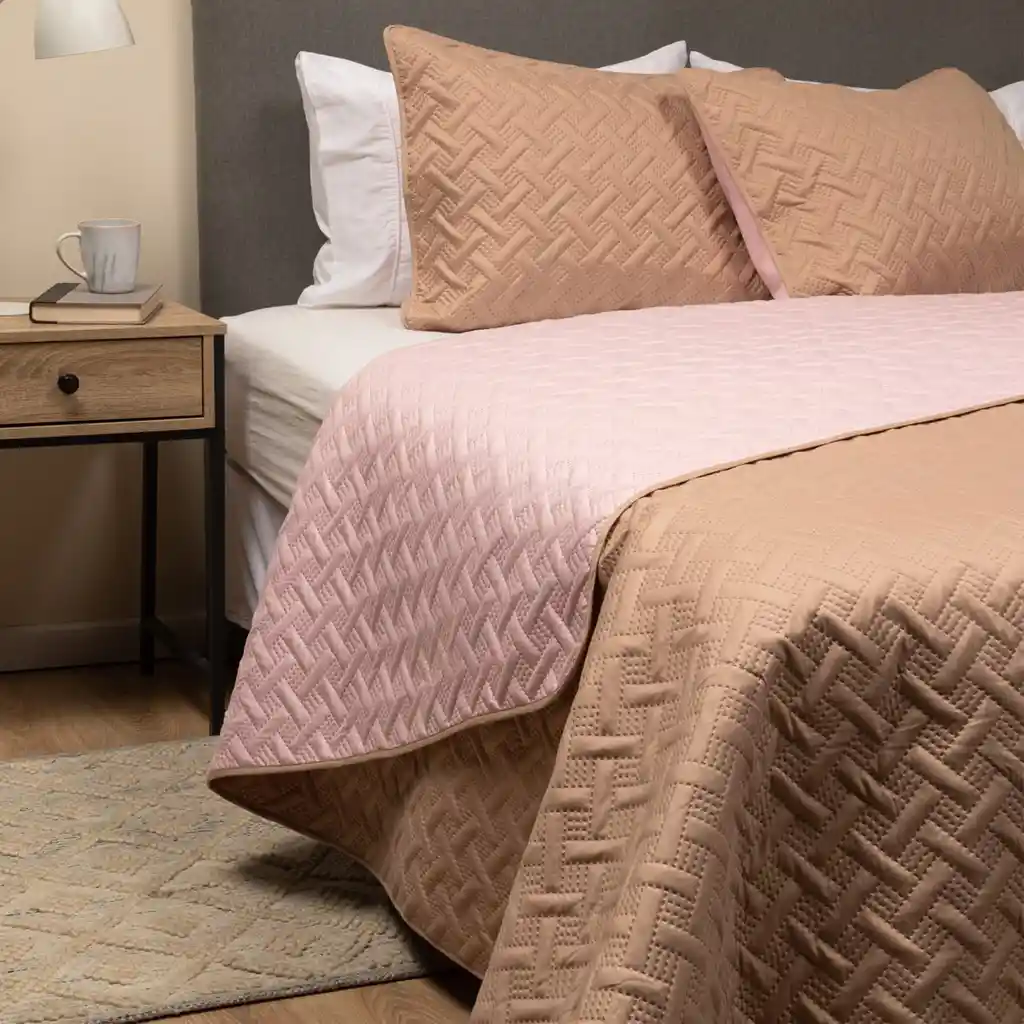 Juego de quilt doble faz y dos fundas de almohada para cama de tamaño King/Super King CasaTua - Delicado diseño inglés con finas terminaciones para renovar el estilo de tu dormitorio. - Doble faz en dos colores sobrios para mantener la versatilidad y hacer juego con diversos tipos de decoración. - Tela suave al tacto, respirable y duradera. - Diseñado para usarse durante todas las estaciones del año. - Cubrecama de microfibra transpirables y ultra suaves por ambos lados, resistente a la decoloración y al encogimiento. - Incluye 2 fundas de almohada. - El tipo de tejido ayuda a repeler la suciedad y las manchas, por lo que el proceso de limpieza es bastante sencillo. - Secado rápido: La microfibra permite un secado mucho más rápido que otros materiales. - Diseño de alta calidad: cuentan con un diseño de costura de alta calidad, que no se descoserá y permitirán mayor durabilidad a tu cubrecama. --------------------------------------------------------------------------- FICHA TÉCNICA: - Material: Poliéster de alta calidad. - Colores a elección: Blanco/Gris (Doble faz). Rosa/Arena(Doble faz) - Tamaño: King / Super King - Cuidados: Lavar a máquina. - Diseño: Moderno. - Patrón: Cubrecamas Rosa: tipo rejilla Cubrecamas Gris: Tipo Flor. --------------------------------------------------------------------------- INSTRUCCIONES DE LAVADO: - Lavado en máquina en ciclo delicado y temperatura fría. --------------------------------------------------------------------------- MEDIDAS: - Quilt: 280 x 260 cm. - 2 Fundas de almohada: 90 x 50 cm. - Peso total: 2 kg. --------------------------------------------------------------------------- QUE VIENE EN LA CAJA: - 1 Cubrecama doble faz para cama King/super king - 2 Fundas de almohada. **CASATUA® es distribuida en Colombia y Sudamérica exclusivamente por Builder Commerce SAS** --------------------------------------------------------------------------- PREGUNTAS FRECUENTES: ¿De qué material es? Poliéster de alta calidad. ¿Cuál es la medida del quilt? Mide 240 x 260 cm, es apto para camas King/super king ¿Los productos tienen garantía? Sí. Todos nuestros productos cuentan con 6 meses de garantía limitada contra defectos de fabricación. ¿El precio indicado incluye IVA? Si, si incluye IVA el precio publicado.