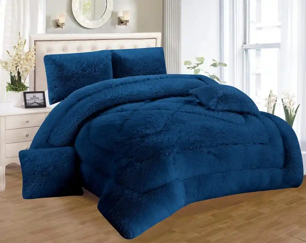 Este diseño es tendencia, perfecto para darle a tu habitación un toque de estilo y glamour. Cubrelecho unicolor de una textura extra suave, elaborado en tela felpa pelo largo y sherpa tipo ovejero. Incluye 1 Cubrelecho 200 x 240 cm, 2 Fundas 55 x 75 cm, 2 Forro de cojin 48 x 48 cm.(verificar disponibiliad de producto).