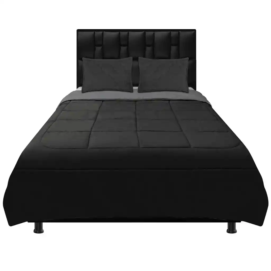 - CUBRELECHO DOBLE FAZ MODERNO DORMILANDIA: - Medida para cama: Doble, 140. - Alto: depende de la altura de la cama. - Material de relleno: Poliéster. - Tela: Fina tela importada. - Color: Gris-Turquesa, Café-Negro, Gris-Negro, Negro-Blanco, Vinotinto-Blanco, Gris-Blanco, Café-Beige, Turquesa-Blanco. - Grosor de 2cm aproximadamente. - Contiene 2 fundas, elaboradas en los mismos materiales. - Observaciones: La foto de este producto ha sido ambientada, por lo cual no incluye ningún adorno, ni accesorios, ni piezas adicionales, ni ningún otro elemento que lo acompañan. El color presentado en la fotografía es una aproximación al color real. - Las fotografías del producto mostrado son reales, debe tener en cuenta que la interpretación del color o textura pueden variar según la configuración de color de su dispositivo móvil o computador, asegúrese de leer detenidamente la información que le proporcionamos del producto antes de realizar la compra.