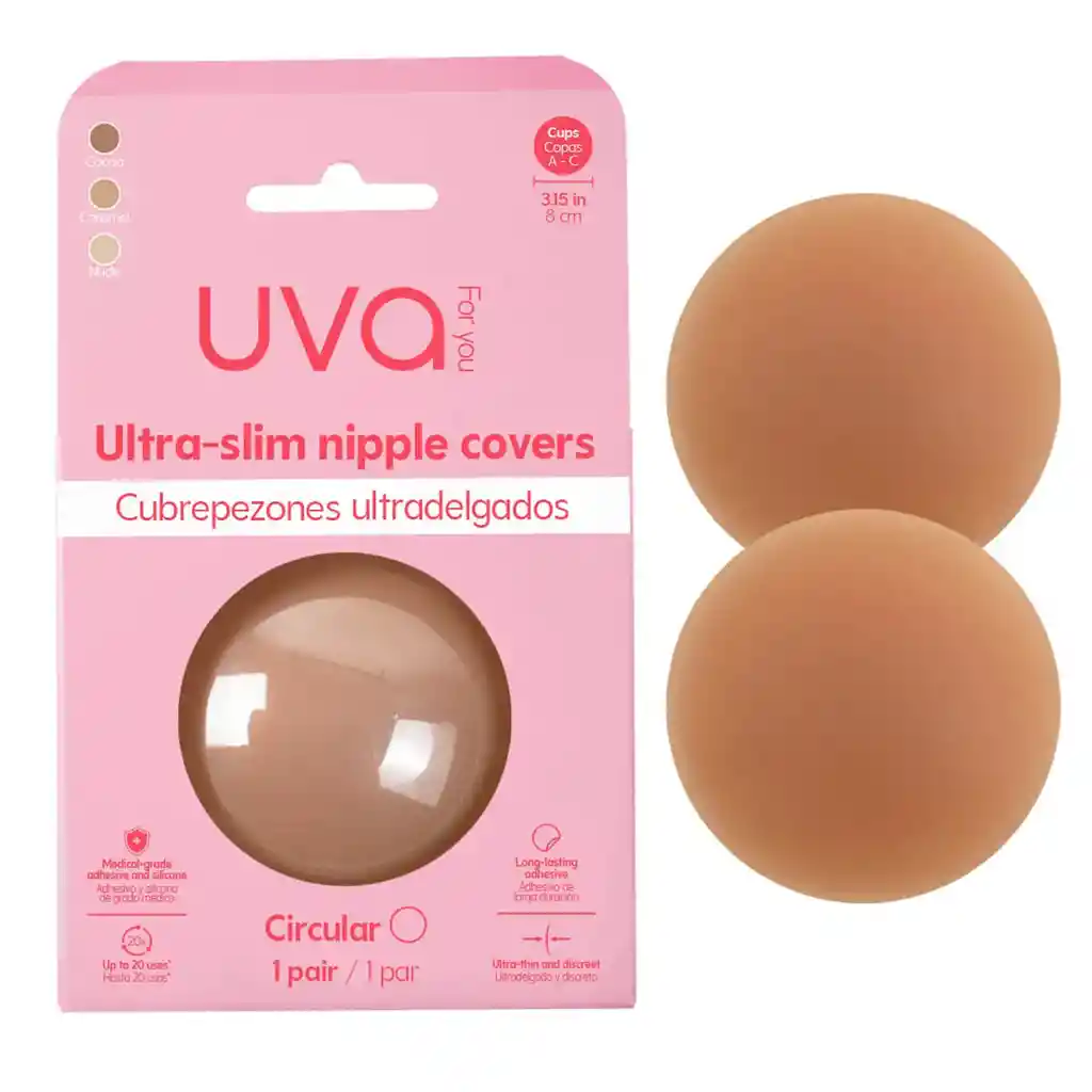 Cubrepezones Uva de silicona ultradelgados e invisibles, diseñados para brindarte comodidad y discreción bajo cualquier prenda. Fabricados con silicona y adhesivo grado médico, son suaves con la piel, hipoalergénicos y con acabado mate que no refleja la luz. Son reutilizables e ideales para usar sin brasier con cualquier prenda y en cualquier ocasión. ✸ Tipo: Cubrepezones de silicona redondos ✸ Presentación: 1 par (2 unidades) ✸ Material: Silicona de grado médico. Adhesivo de grado médico de larga duración. Hipoalergénicos y amigables con la piel ✸ Acabado: Mate (no refleja la luz). Ultradelgados y discretos. ✸ Talla: Copas A – C ✸ Tamaño: Diámetro: 8 cm / 3.15 in ✸ Resistencia: Reutilizables, lavables y resistentes al agua.