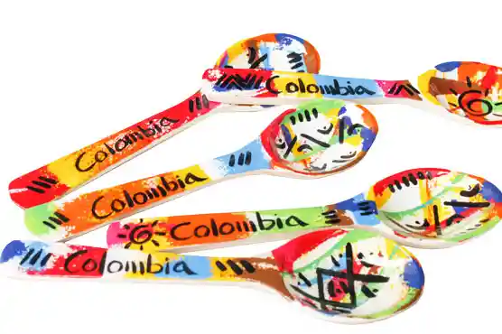 Cuchara dulcera en madera pintada a mano con motivo Colombia y resinada