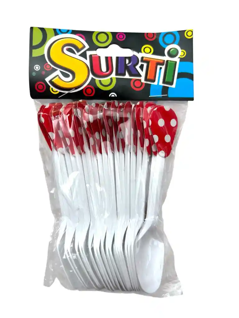 Cucharas Rojo Puntos Blancos plásticas Paquete X 20 Unidades
