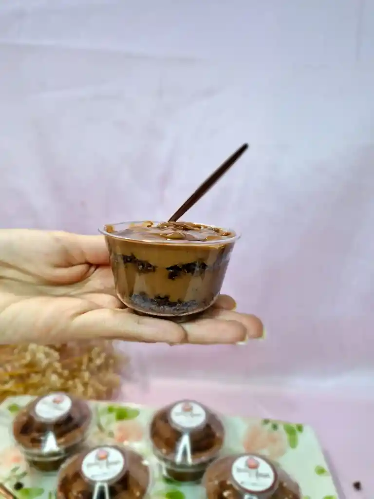Postre con diferentes texturas de chocolates