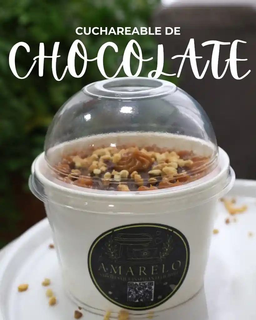 Cuchareable con base de torta de chocolate, relleno de arequipe y chocolate.