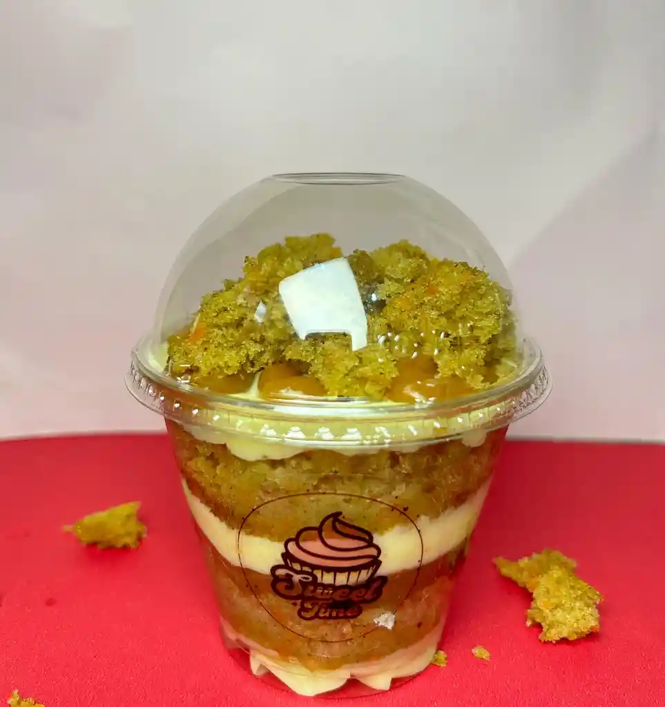 Un delicioso y suave postre cuchareable de zanahoria, hecho con capas de esponjoso bizcocho de zanahoria y una cremosa mezcla que se deshace en la boca. El toque de arequipe entre las capas realza su sabor, brindando un equilibrio perfecto entre dulce y especias naturales de la zanahoria.