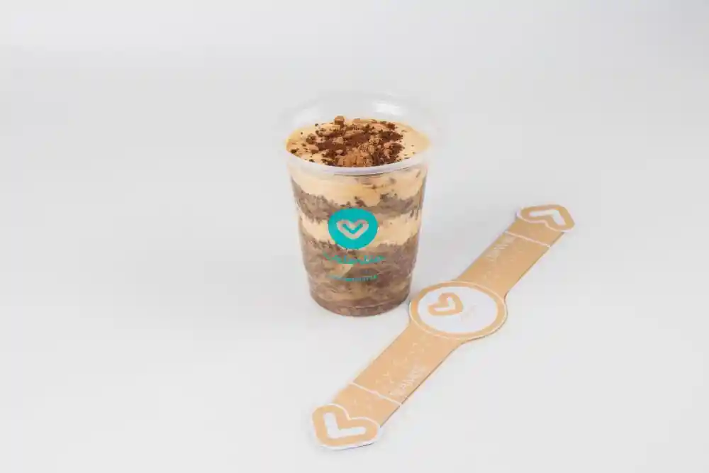 2 capas de torta brownie ( 10% avena, 90% almendra ) + 2 capas de frosting a base de yogurt griego sin azucar + remojado en leche de café + topping cacao. Endulzado con stevia