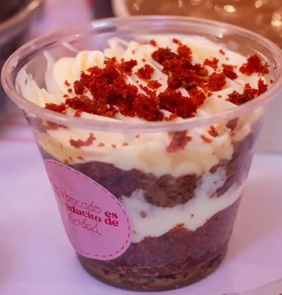 Delicioso cuchareable con capas de pudín de zanahoria y crema de la casa red