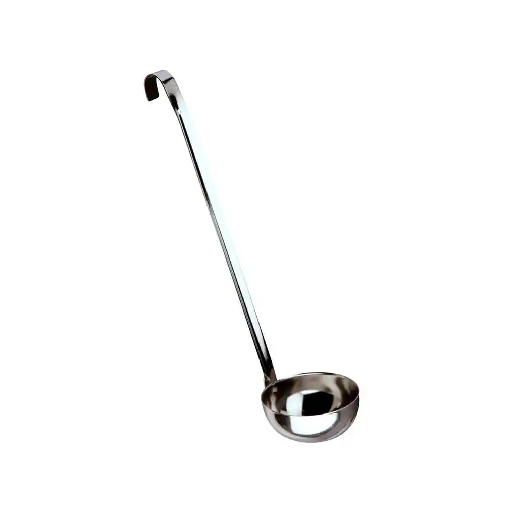 Fabricado en acero inoxidable de alta calidad. Cabezal profundo tipo cazo ideal para servir porciones . Su agarre es cómodo, seguro y fácil de manipular. Mango largo con gancho colgador. Su mango ofrece un agarre firme y seguro,. Material resistente a la corrosión . Fácil de limpiar y mantener. Uso doméstico o profesional. No absorbe olores ni sabores. Diseño ligero y manejable. Resistente al uso continuo industrial o gastronómico. Apto para contacto con alimentos. Resistente al uso continuo. La imagen ha sido ambientada; no incluye accesorios adicionales y el color puede variar según la iluminación.