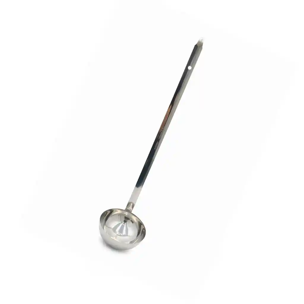 Fabricado en acero inoxidable. Material resistente a la corrosión. Mango largo con gancho. Diseño ergonómico y ligero. Ideal para uso continuo. Resiste el desgaste. Permite porciones grandes. Ideal para sopas y guisos. No retiene olores ni sabores. Apto para contacto con alimentos. Ideal para cocinas domésticas y profesionales. Apto para lavavajillas. Fácil limpieza y mantenimiento. La imagen ha sido ambientada; no incluye accesorios adicionales y el color puede variar según la iluminación.