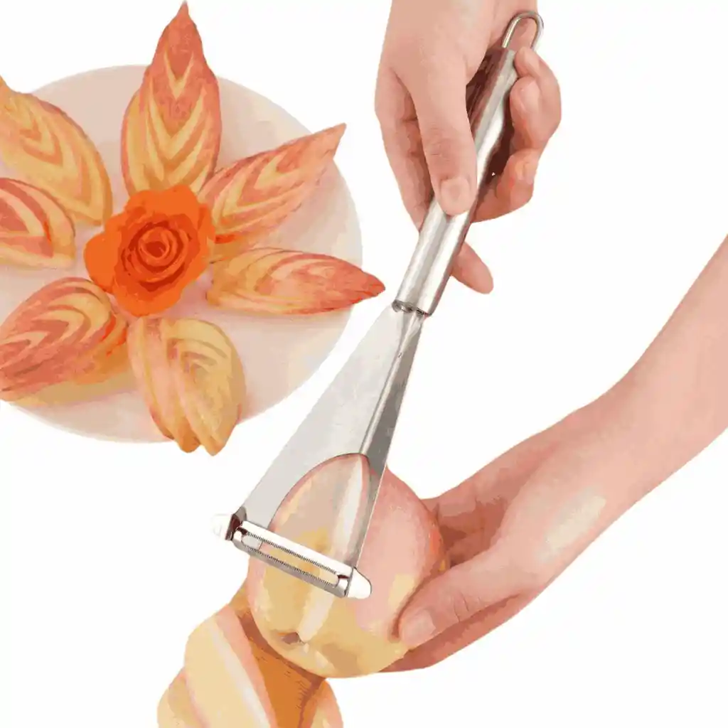 1 unidad Cuchillo de acero inoxidable para tallar frutas, rebanador de verduras de forma Triangular, Plato de frutas, hoja de tallado antideslizante, herramienta de cocina Cuchillo triangular para tallar frutas, cuchillo de empuje de manzana de acero inoxidable para el hogar, molde para tallar alimentos con artefacto de plato de fruta de chef. Diseño único, Las funciones incluyen grabado y pelado. Una herramienta de cocina práctica e indispensable. Puede cortar fácilmente manzanas, sandías, pepinos, frutas de dragón y otras frutas. El ingenioso diseño del cuchillo para tallar frutas no solo hará que su fruta sea más artística, sino que también hará su vida más colorida y satisfará todas sus necesidades de tallado. Cuchilla triangular afilada, flores de corte perfecto. Las piezas cortadas son uniformes, el apilamiento es perfecto, hermoso, fácil de usar, rápido y seguro de cortar. El mango redondo y grueso de acero inoxidable, el mango y la hoja están soldados con firmeza y son más duraderos. Además, se adapta a la palma de la mano, es cómodo de sostener y no es fácil de deslizar. El diseño del orificio para colgar de la cola se puede colgar y almacenar, lo que no ocupa espacio y es de fácil acceso. Simplemente enjuague o tire al lavavajillas superior, fácil de limpiar y secar. Especificación Material: acero inoxidable Tamaño: 24*6cm Color: plata Cantidad: 1 Material de la hoja: STAINLESS STEEL Característica Respetuoso con el medio ambiente: Tipo de Metal: STAINLESS STEEL Material: Metal Tipo de herramientas para frutas y vegetales: Trituradoras y cortadoras Tipo: Herramientas de frutas y vegetales Metal Type: Stainless steel garantia un mes por defectos de fabrica