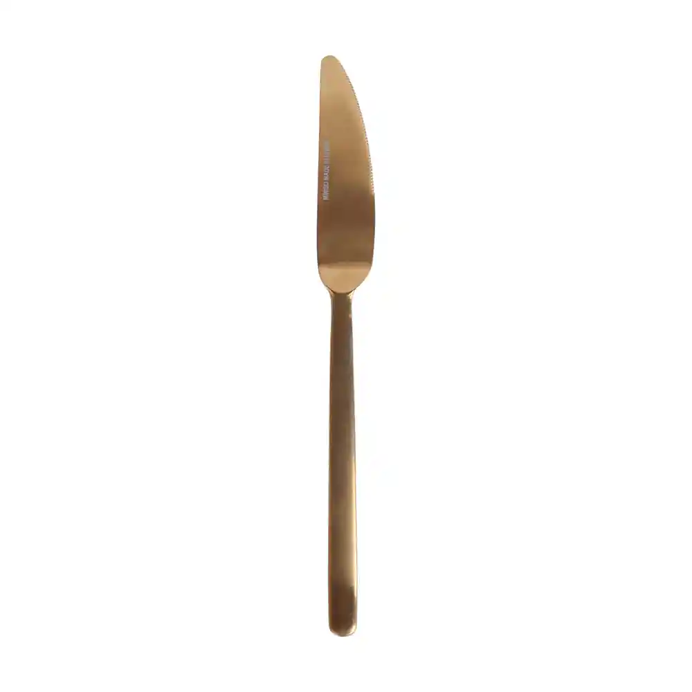 Miniso Tiene Para ti Este Cuchillo ¡Conviértelo en el Complemento Ideal Para tu Vajilla! Elaborado en Acero Inoxidable de Grado Alimenticio. Tamaño 22.8 cm. Te Otorga un Diseño en Tonalidad Dorada Elegante y Versátil Perfecto Para Ocasiones Especiales o Uso Diario. ¡Se Adapta a Todo Tipo de Vajillas!.