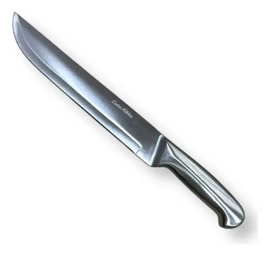 Cuchillo de cocina profesional diseñado para ofrecer cortes precisos y cómodos en la preparación diaria de alimentos. Su hoja de acero inoxidable proporciona durabilidad, resistencia a la corrosión y un filo eficiente para cortar carnes, verduras y otros ingredientes con facilidad. El mango ergonómico permite un agarre firme y seguro, brindando mayor control durante el uso. Es una herramienta práctica tanto para cocinas domésticas como para uso profesional. Características Tipo: Cuchillo de cocina Material de la hoja: Acero inoxidable Material del mango: Plástico resistente Longitud total: 29 cm Tamaño de hoja: 7 pulgadas Mango ergonómico antideslizante Corte preciso y duradero Fácil de limpiar Ideal para: Cortar carnes, verduras, frutas, pescado y alimentos en general en la cocina. Incluye: 1 cuchillo todo acero inoxidable