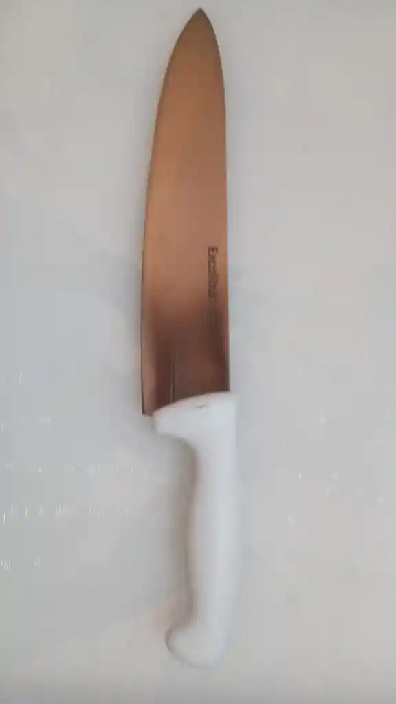 CUCHILLO CARNICERO EN ACERO INOXIDABLE,. MEDIDAS LARGO 33 CM, ANCHO 5 CM