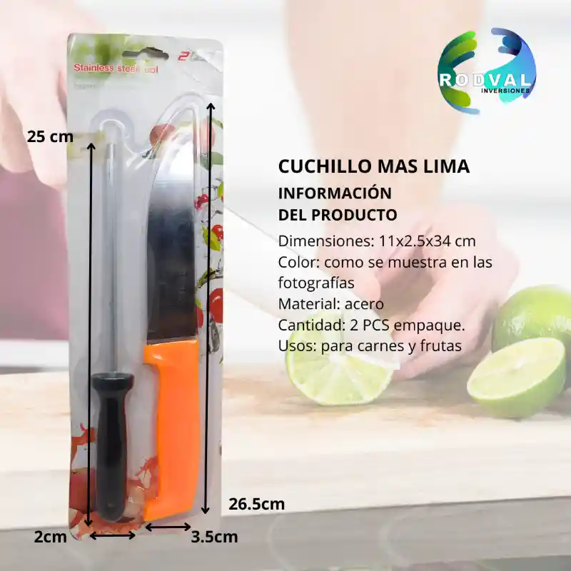 💚🔪 cuchillo+lima uso para carne y frutas. 2pcs material en acero color como se muestra en las imágenes dimensiones 11*2.5*34cm