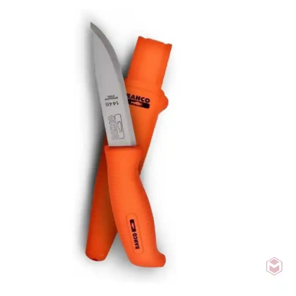 Cuchillo Bahco 1446 Con Funda Plástica Cuchillo robusto, con una cuchilla de acero inoxidable maciza para usos múltiples. Mango de un solo componente (plástico), con agarre seguro. Características: – Modelo: 1446 – Peso: 111 gr. – Hoja acero Inoxidable. – Largo Total: 22 cm. – Largo de hoja: 10 cm. – Espesor de la hoja 2 mm. – Usos recomendados: Multiuso. – Funda plástica rígida, con gancho para colgar en el cinturón o pantalón. Contenido del paquete: 1-Cuchillo 1446
