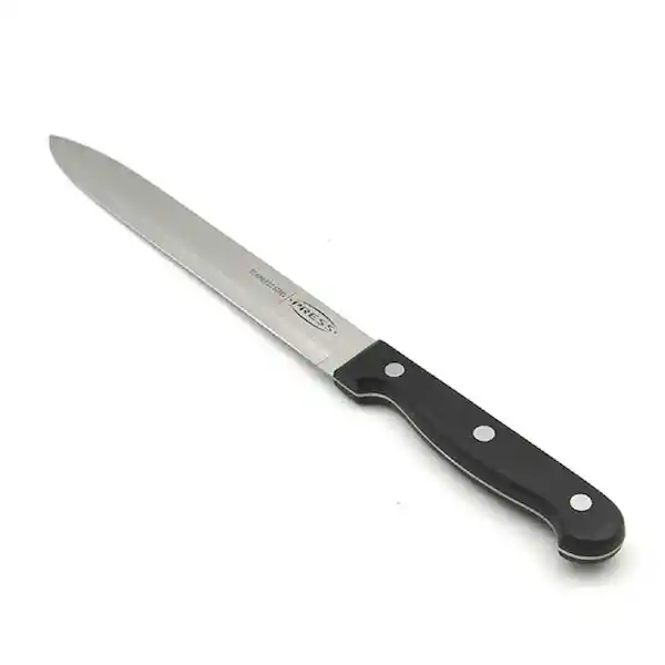 Línea Profesional. Hoja de Acero Inoxidable Con Mango de Baquelita. Sujeción de Tres Remaches Para Mayor Durabilidad. Mango Ergonómico Para un Agarre Seguro y Cómodo. Ideal Para Filetear Carnes Rojas y Blancas. Materiales: Mango en Pom Con Hoja en Acero Inoxidable. Uso: Ideal Para Filetear. Cuidados: Antes de Utilizar, Lavar Con Agua y Secar Inmediatamente. No Exponer el Mango al Calor, ni Colocar Directamente Sobre Superficies Calientes. Lámina Afilada y Punzo Penetrante. Manipular Con Cuidado y Mantener Fuera Del Alcance de Los Niños.