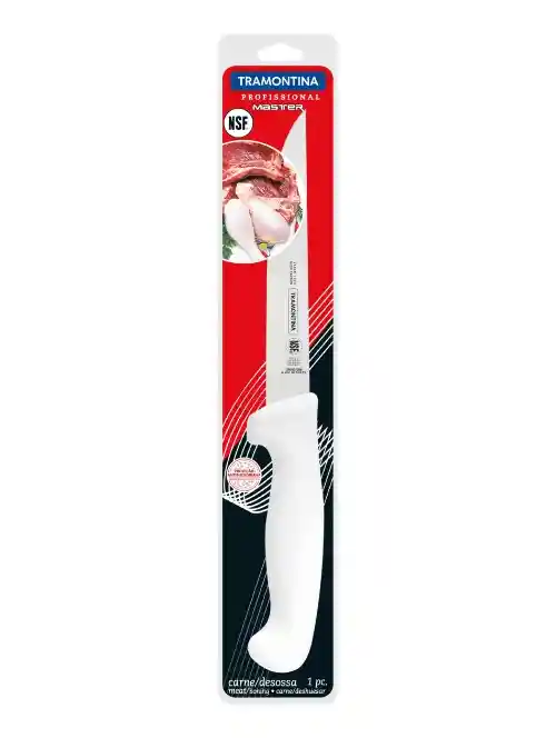 America Store te trae Cuchillo para Deshuesar Tramontina Profesional con Lámina de Acero Inoxidable y Mango en Polipropileno Blanco 6" Modelo: 24605/186 Para sus tareas en la cocina o en la carnicería, el cuchillo para deshuesar Tramontina Profesional con lámina de acero inoxidable y mango de polipropileno blanco de 6 pulgadas es la opción perfecta. Desarrollado para proporcionar un corte preciso, está producidocon una lámina de acero inoxidable que pasa por un proceso de tratamiento térmico y posee un mango de polipropileno blanco. Es resistente, duradero y proporciona un manejo firme y cómodo gracias a su formato anatómico y al acabado texturizado del mango. ¡Un artículo indispensable para completar su cocina y hacer sus tareas de forma aún más práctica! ºProductos cortantes y que perforantes, tenga cuidado al manejarlos y manténgalos fuera del alcance de los niños. ºPara mayor durabilidad de los productos se recomienda sercarlos bien depois de lavarlos, incluso sí se han lavados en lavavajillas. ºPara el desecho de productos y embalajes, siga las orientaciones de reciclaje vigentes. Caracteristicas: -Ideal para deshuesar los alimentos. -La lámina es resistente, afilada y durable. -La lámina de acero inoxidable especial está tratada térmicamente con un proceso subcero, que garantiza niveles de dureza promedio de 56 HRc. -El desbaste cónico en el espesor es adecuado para cada aplicación, lo que garantiza -precisión y durabilidad en el hilo de corte. -El mango es anatómico, higiénico y seguro. -El mango es de polipropileno texturizado, que ofrece mayor confort y seguridad en el manejo. -El mango está inyectado directamente sobre la espiga, lo que asegura una perfecta fijación y evita la retención de residuos. -El mango con protección antimicrobiana inhibe el crecimiento de hongos y bacterias, proporcionando beneficios relacionados con la higiene y la reducción de microorganismos que causan la contaminación. Dimenciones : ALTURA: 2,2 Cm ANCHO: 4,1 Cm LONGITUD: 29,4 Cm
