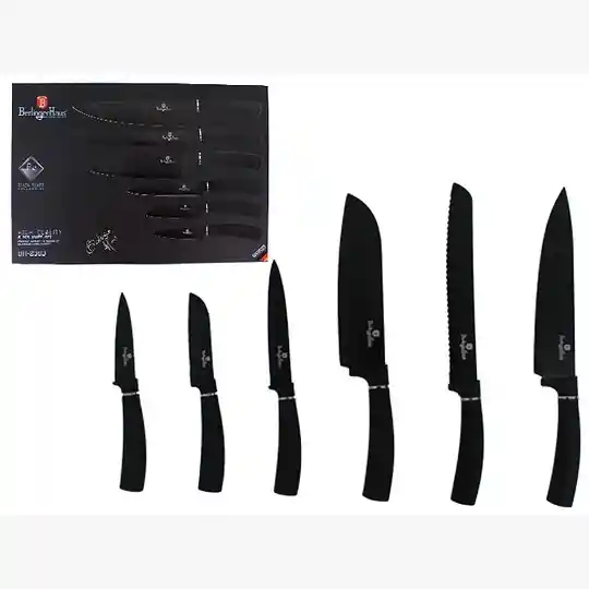 Juego de cuchillos de cocina de alta resistencia y calidad, con hoja afilada ideal para cortar carne, verduras, picar ensaladas, trinchar alimentos, entre otros. Este set de cuchillos también incluye un pelador y unas tijeras multifuncionales. Características: -Set de cuchillos de cocina profesional que incluye 4 cuchillos, 1 tijera y 1 pelador de cerámica. -Mango ergonómico antideslizante, proporciona un agarre cómodo. -Material de alta calidad, resistente al óxido, fácil de usar y limpiar. -De alta dureza y robustez, se desempeña bien en rebanar, cortar en cubitos, picar, entre otros. -Incluye cuchillo de chef, cuchillo de trinchar, cuchillo pequeño, cuchillo de cocina, tijeras y pelador de cerámica. El set incluye: 1 * cuchillo de chef 1 * cuchillo de trinchar 1 * cuchillo pequeño 1 * cuchillo de cocina 1 * pelador.