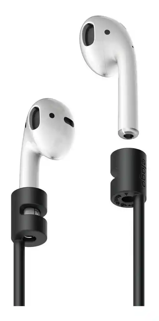 Cuerda Elástica Deportiva Para AirPods 1 / 2 disponible en Negro; te ayudará a utilizar y disfrutar de tus auriculares de forma segura sin miedo a perderlos de vista. Podrás aprovecharlos en cualquier lugar y momento, mientras haces ejercicio, vas al trabajo, viajas y muchos momentos más. El diseño de la correa de elago ha sido pensada para que sigas beneficiándote de las funcionalidades de tus Apple Airpods. Incluyendo una apertura para el micrófono y los sensores de los Airpods. Características: - Medido y hecho a la longitud ideal para el movimiento. - Compacto, ligero y extremadamente duradero. - Ideal para mantener AirPods cerca durante las actividades al aire libre. - Hecho de material de silicona de alta calidad, fácil de quitar e instalar, cómodo de llevar, no daña la piel. - El diseño sin enredos hace que el cable sea fácil de almacenar y puede enrollarlo sin tener que preocuparse por los nudos o dobleces.