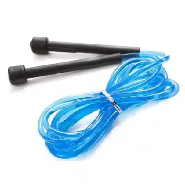 Cuerda para Saltar azul Sportiva, elaborada en plástico, diseño con asas triangulares, cable delgado y soporte plásticos, ideal para mejorar la coordinación, agilidad, rapidez y resistencia.