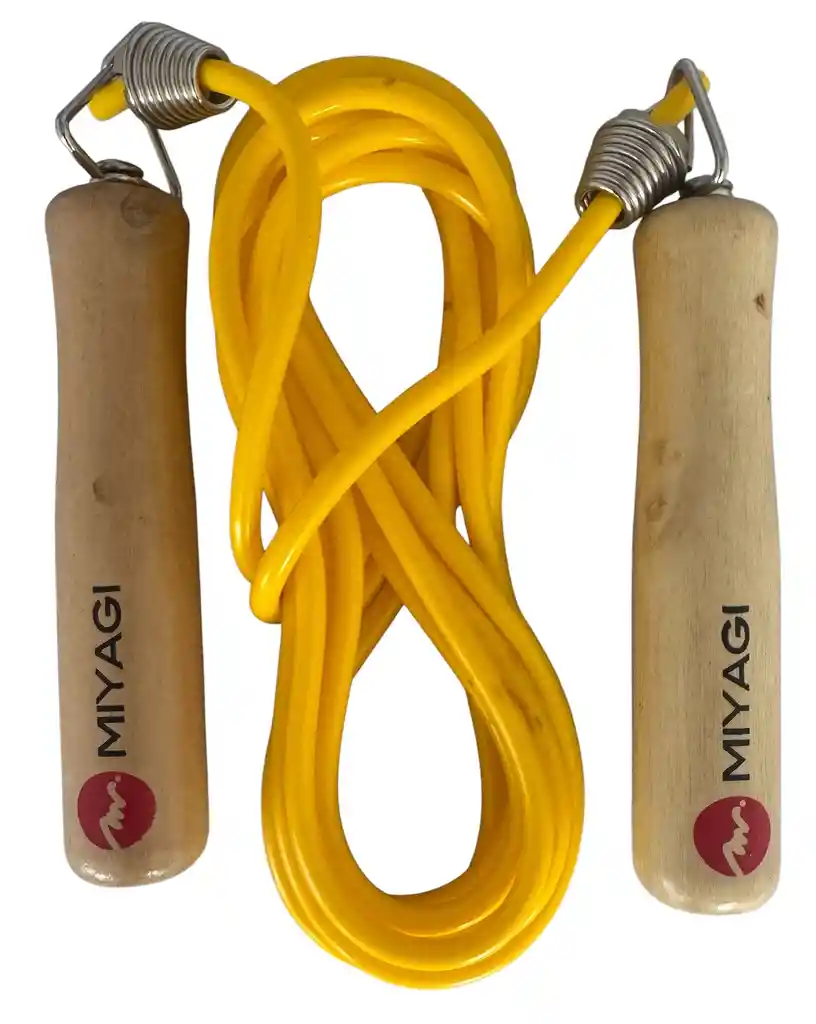 CUERDA PARA SALTAR MIYAGI M488 - 2.70 CM/ Amariilo Elaborado en material sintético, liviano y flexible, con mango en madera, cómodo y ergonómico, material de la cuerda en PVC, sistema de rotación y flexible. RECOMENDACIONES: Este producto no es recomendado para cemento o superficies arenosas, se recomienda usar en interiores y superficies lisas, realiza el calentamiento adecuado antes de usar la cuerda para evitar lesiones, acomodar la cuerda a la longitud correcta, pisándola a la mitad y sosteniendo los mangos de acuerdo a la estatura, sujetar los mangos con fuerza, hacer que la cuerda quede en forma de arco, mover de atrás hacia adelante y saltar cuando el lazo esté a punto de tocar los pies, lavar a mano con agua fría y secar al aire. Un ejercicio simple con múltiples beneficios. Solo se necesita EL lazo para saltar Miyagi, aprender la técnica y mejorar tiempos. Es una de las actividades que genera mayor gasto calórico, aun por encima del ‘running’. Además, tiene la ventaja de que puede hacerse en cualquier lugar, ya sea al aire libre o en un espacio cerrado, y prácticamente no tiene contraindicaciones. Saltar lazo favorece la oxidación de ácidos grasos. Este es el beneficio que siempre se menciona como prioritario de este ejercicio, permite quemar unas 12 calorías por minuto, te ayudará a ser más veloz, quemarás calorías, tonifica tu cuerpo, ayuda con tu concentración, te brinda resistencia muscular, mejora tu condicionamiento aeróbico, aumenta tu potencia, es un ejercicio súper práctico. DISTRIBUIDOR AUTORIZADO Envíos a nivel nacional. ONE ZONE SPORT NIT: 901.451.888-6