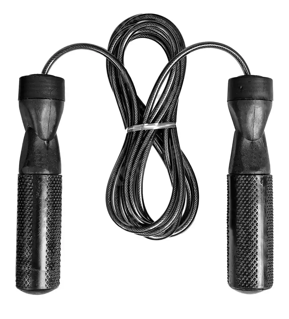 Medida: 260 cm Color: Negro Ideal para complementar tu equipo de entrenamiento. Fabricado con mango en PVC plástico de alta calidad Recubrimiento plástico en la cuerda para durar mucho más. Ideal para mejorar tu resistencia aeróbica.