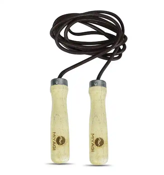 La cuerda de saltar, es ideal para complementar tu equipo de entrenamiento. Saltar la cuerda es un entrenamiento cardiovascular altamente efectivo que quema más calorías que correr, nadar y jugar tenis. Ideal para mejorar tu resistencia aeróbica. BENEFICIOS: - Tonifica brazo, hombros, y piernas. - Trabaja la musculatura del abdomen. - Fortalece los glúteos, muslos y gemelos. - Mejora tú coordinación equilibrio, velocidad, potencia y resistencia. - Genera un gran gasto calórico - Ideal para entrenamientos de alta exigencia. - Ayuda a combatir la osteoporosis. - Brinda salud cardiovascular. RECOMENDACIONES DE USO: - Este producto no es adecuado para cemento o superficies arenosas se recomienda usar en interiores y superficies lisas para una mayor durabilidad. - Realizar un calentamiento adecuado antes de usar la cuerda para evitar lesiones. - Marca: Miyagi. - Referencia: M3472. - Largo Máximo: 2,75m (estatura máxima recomendada:1,80m ). - Medidas Cuerda: 275 cm Largo X 1 cm Ancho. - Medidas Mango: 15 cm Largo X 3 cm Ancho. - Medidas Empaque: 13 cm Ancho X 30 cm Largo X 4 cm Alto. - Material: Mango en madera, Cuerda de cuero y sistema de rotación. - Color: Mango: Madera. Cuerda: Café. El paquete incluye: - Cuerda Para Saltar Miyagi M3472.