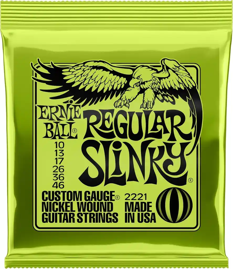 Cuerdas Para Guitarra electrica Ernie Ball Regular Slinky calibre 10-46 Marca Ernie Ball Calibre de cuerdas .010 - .046 Color Regular (10-46) Instrumento Guitarra eléctrica Tipo de material de la cadena Acero de níquel Marca Usada por leyendas de todo el mundo, incluyendo Slash, Jimmy Page, Metallica, Eric Clapton, y más.
