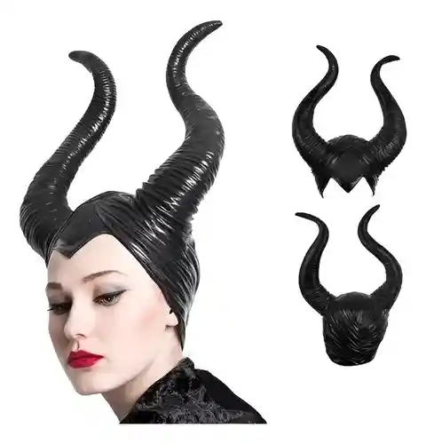 Cuernos Disfraz Malefica Cachos Para adultos Halloween Medidas 43x28cm Alto de cada cacho35cm material plastico tipo silicona color negro apto para adultos si deseas algo adicional indicanos