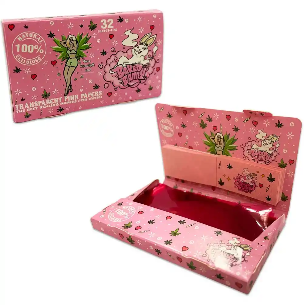 Disfruta de una experiencia única con los papelillos Baked Bunny de celulosa rosa transparente. De combustión lenta y tamaño 1 1/4, incluyen filtros para mayor comodidad Perfectos para quienes buscan calidad y estilo al fumar.