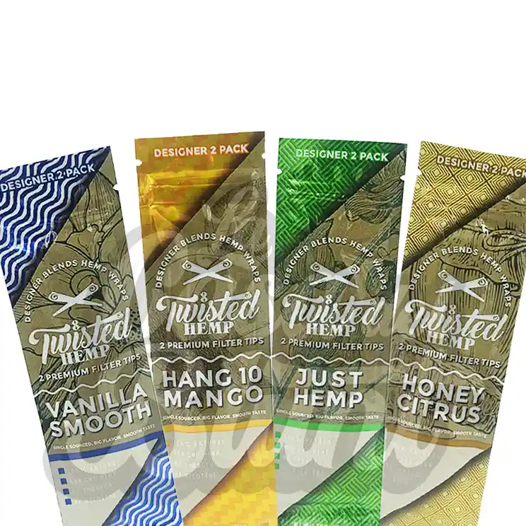 Sobre con 2 hojas de cañamo 100 % natural, una gran opción para disfrutar de tu producto favorito en sabores diferentes o en su sabor natural.