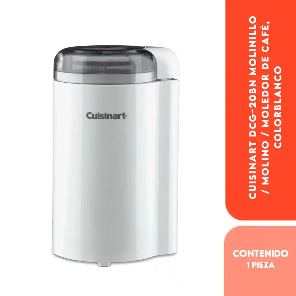 Cuisinart Molinillo de Café Eléctrico DCG-20N Blanco ofrece una molienda rápida y uniforme gracias a sus cuchillas de acero inoxidable, ideales para conservar el aroma y la frescura del grano. Su capacidad de 70 g (2.5 oz) permite preparar hasta 12 tazas con la textura adecuada para un café más rico y equilibrado. Su diseño compacto y práctico facilita el uso diario, apoyando una rutina más saludable al permitir moler café fresco en casa, reduciendo impurezas y mejorando la calidad de cada taza para una experiencia más pura y aromática.