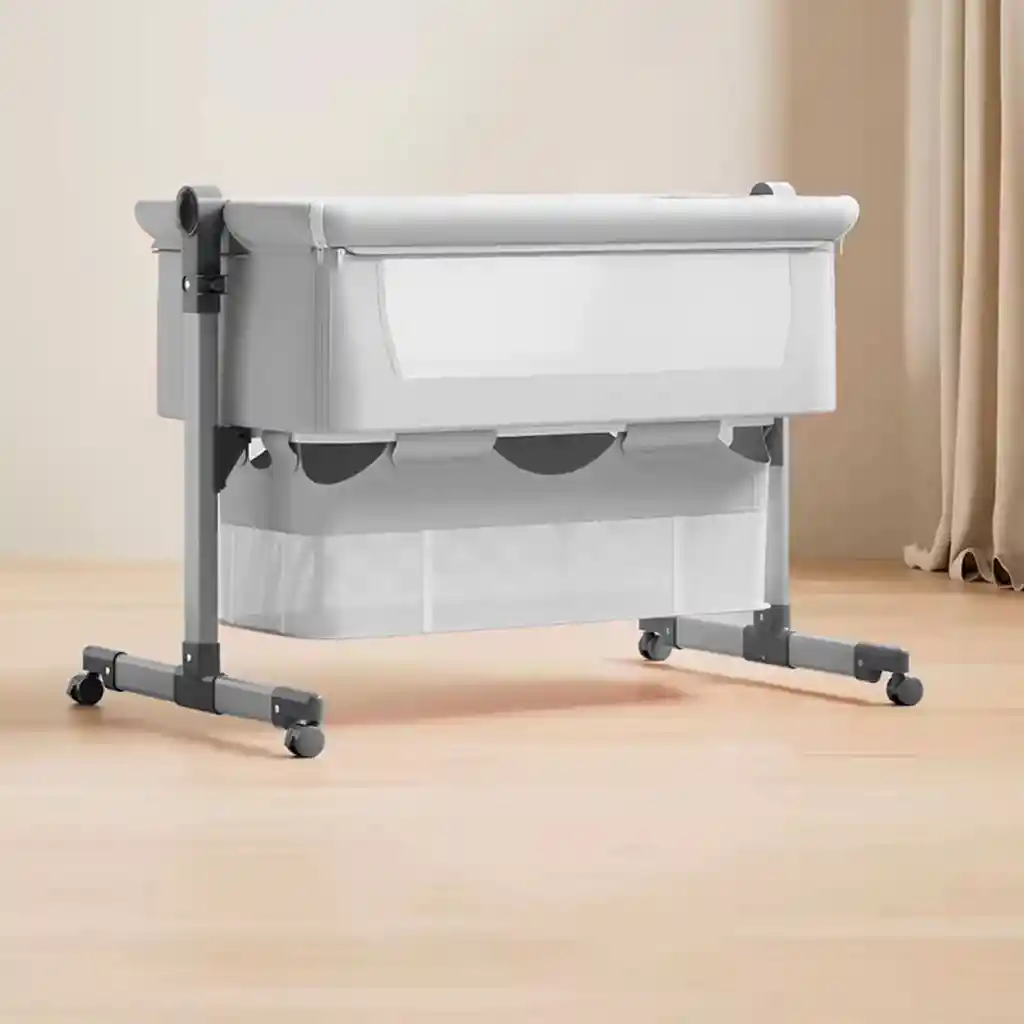 Cuna Colecho Con Canasta Y Función De Mecedora, Incluye Mosquitero, De Altura Ajustable, Gran Resistencia Gris