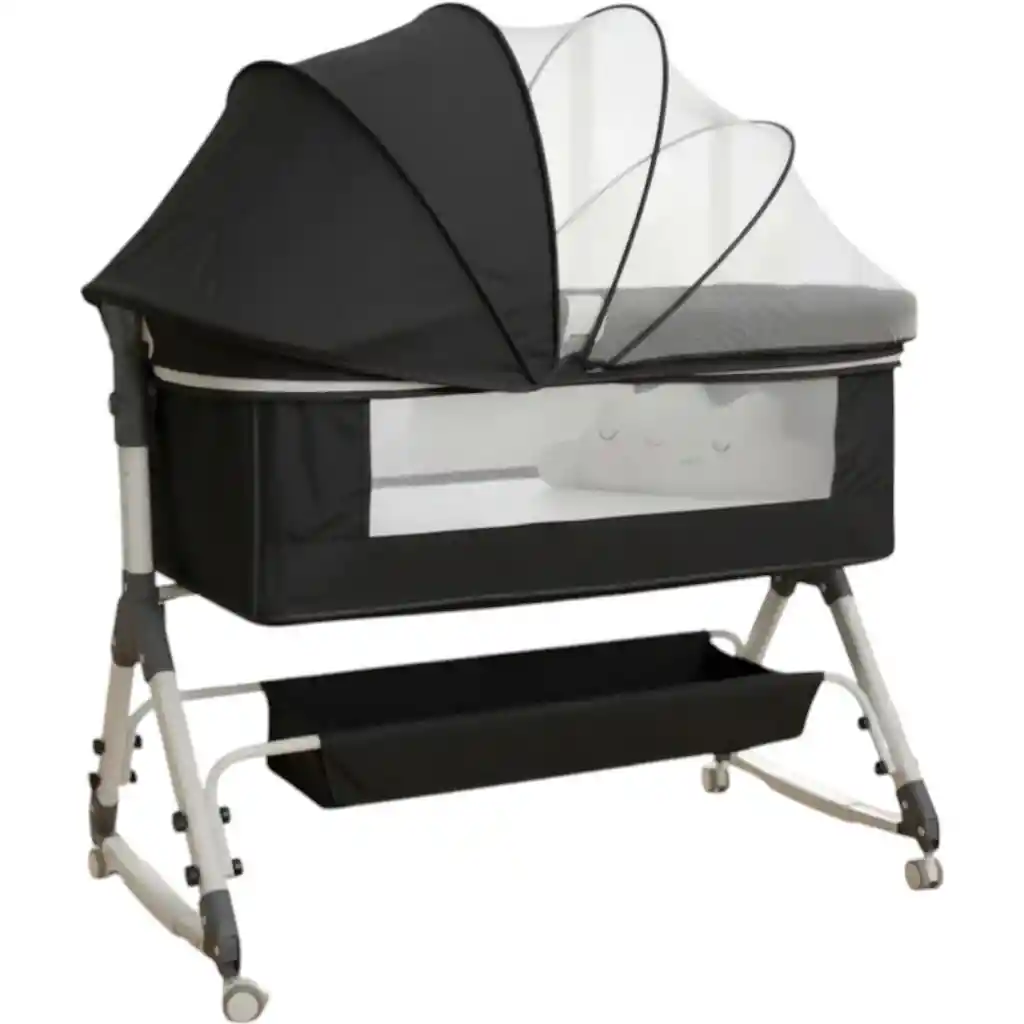 Colecho Cuna Bebé Cuna Colecho con mosquitera y organizador. Se puede colocar inclinada para el reflujo, además la puedes balancear para mecer a tu bebé. Con ruedas para poderla llevar fácilmente a cualquier lado La cuna colecho se puede abrir lateralmente con cremalleras, Si eres mamá lactante te facilitara darle el pecho y luego acomodarlo en su espacio sin interrumpir demasiado tu sueño. Colecho tiene 3 alturas 1 altura máxima de Colchoneta a piso 53 cm 2 altura mínima de colchoneta a piso 49 cm