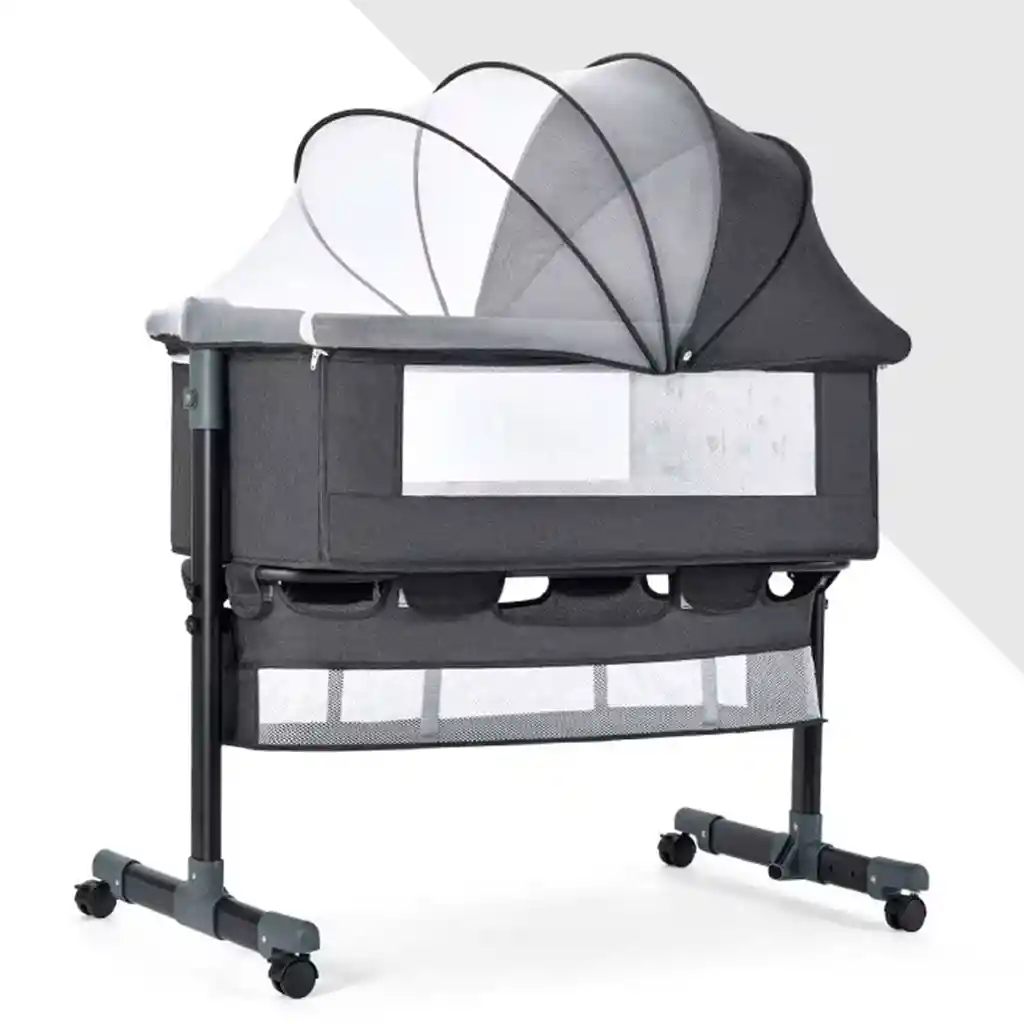 Cuna colecho para bebé recién nacido es ideal para sus necesidades de descanso, además tiene una barra lateral desmontable que se puede unir fácilmente a la cama de los padres. Es muy conveniente cuidar al bebé y tener una interacción entre padres y niños durante esas primeras noches. Características: Mantén a tu bebé cómodo y cerca, para que ambos puedan "dormir como un bebé" con la Cuna colecho para bebé recién nacido. La Cuna colecho para bebé recién nacido está diseñada para adaptarse justo al lado de su cama, este colecho es perfecto para las mamás que amamantan. Con el bebé a tu lado, dormir y amamantar muy fácilmente, mientras que las madres pueden descansar lo que tanto necesita. La Cuna colecho para bebé recién nacido se pliega a un tamaño compacto para una fácil portabilidad durante los viajes. Cuatro ruedas hacen que sea fácil mover el colecho de una habitación a otra. La Cuna colecho para bebé recién nacido tiene un compartimento compacto pero espacioso que le permite mantener los paños y pañales para eructos de fácil acceso para limpiar esas sorpresas inesperadas. Olvídate de correr a la habitación del bebé cada vez que tu bebé hace popa. El marco de aluminio ligero pero resistente de nuestro moisés portátil para bebé es resistente y construido para durar. Las esquinas son redondeadas para evitar arañazos y lesiones.