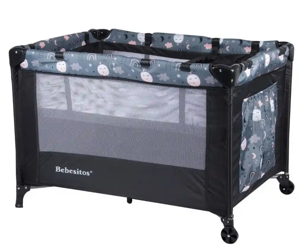 Descripción Cuna Corral ECO Bebesitos® • Dos niveles, (Cuna Corral) • Cambiador. • Bolsillo lateral porta objetos. • Toldillo plano, a ras de la superficie. • Mallas laterales para ofrecer una temperatura fresca. • Fácil plegado. • Práctica tula de viaje. • Medidas: alto 70, ancho 73 y fondo 100 Cm. • Edad sugerido: 0 a 36 meses o 15 Kg. • Materiales: tubo galvanizado, polietileno, tela poliéster hipoalergénica. • Garantía 3 meses.