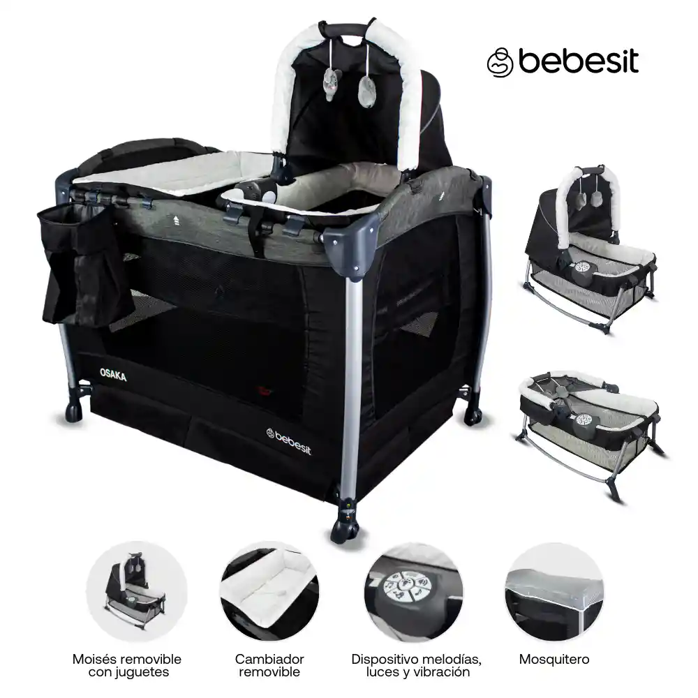 • Cuna corral pack and play • Puede ser utilizada como cuna o corral • Con mosquitero • Moises removible con juguetes • colchón incluido • Cambiador removible • Ruedas para su fácil transporte • Fácil de armar y desarmar • Bolsillo lateral de almacenamiento • Ruedas con frenos • Malla lateral para mejor ventilación • Bolso de transporte • Unidad musical con luces y vibración
