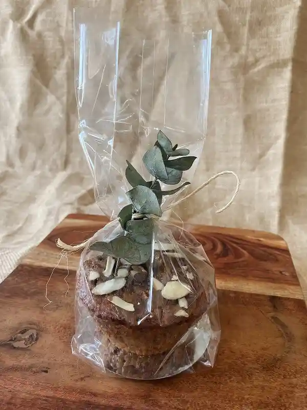 Cupcake XL de banano con chocolate y nueces.